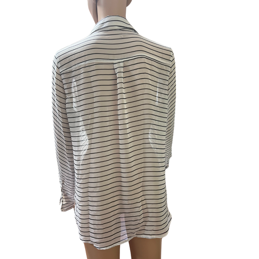 Old Navy White with Black Stripes Formal Blouse (Size Medium)