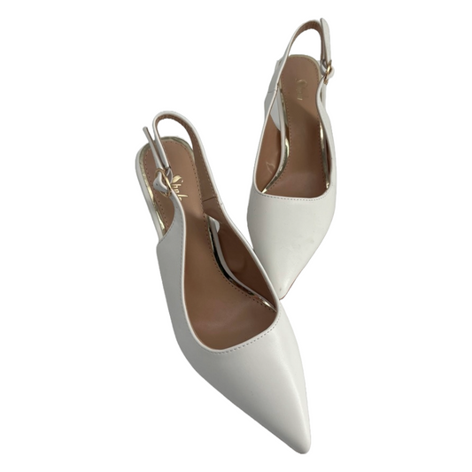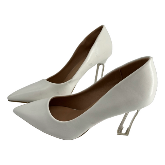 Sheln White Kitten Heel Shoes for Women (Size 37)