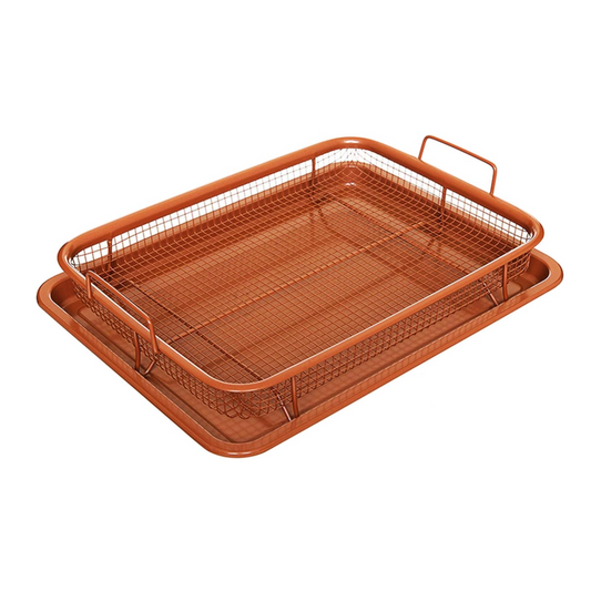 Non-Stick Baking Tray with Grill Crispy Basket Copper Crisper Air Fryer Pan