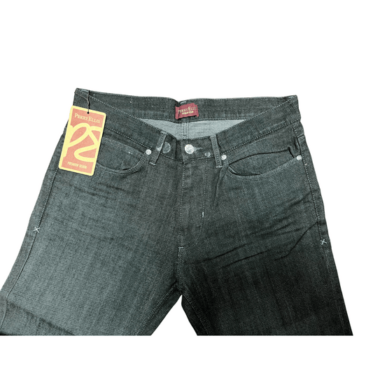 Perry Ellis Mens Classic Fit Straight Leg Low Rise Jean, Dark Indigo, 34x30 _ Button is rusted