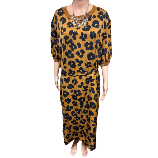Golden mustard and black 3/4 print dress by Who What Wear (Size XL)