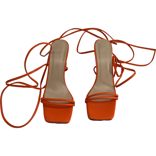 High Heels Strappy Lace Up Open Toe Orange Shoes (Size 7)