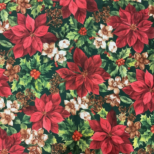 Christmas Poinsettia Red and Green Tablecloth (101x60)