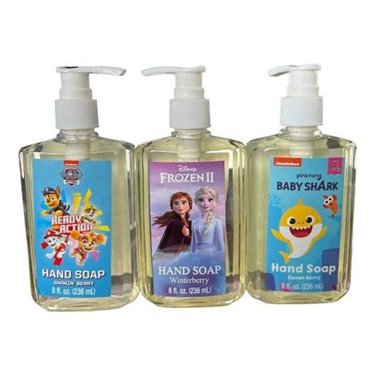 Surtido de jabones de manos para niรฑos Frozen II, Baby Shark y Paw Patrol (3 piezas)