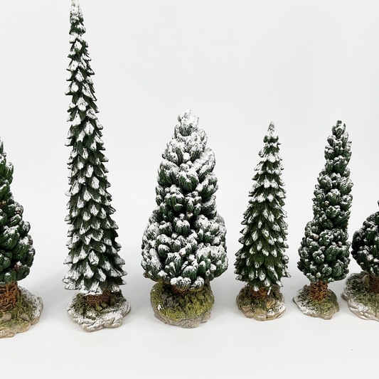 Village Snowy Evergreens, juego de 6, mediano