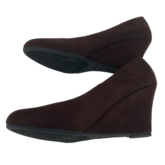 Dexflex Comfort Zapatos de tacón de cuña de gamuza sintética de color chocolate con punta redonda para niñas/mujeres (talla US 7)