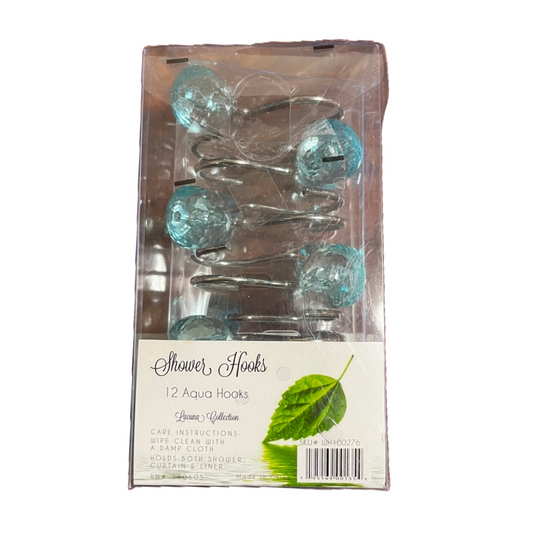 Lacuna Collection Metal Aqua - Juego de 12 ganchos para ducha para baño