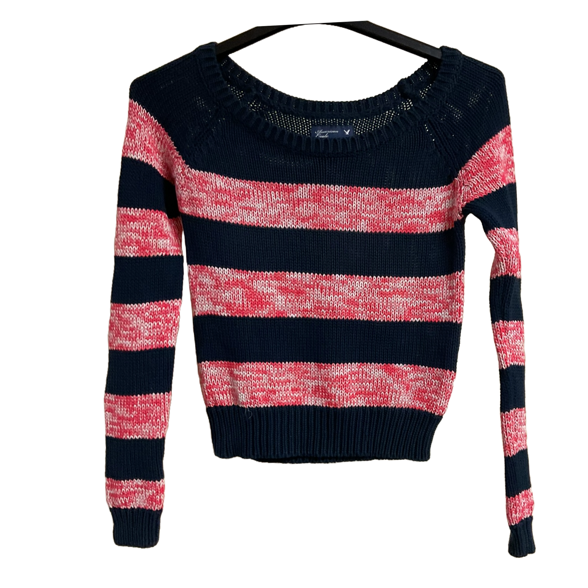 American Eagle Outfitters Suéter azul y rojo para mujer (pequeño)