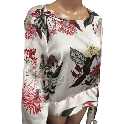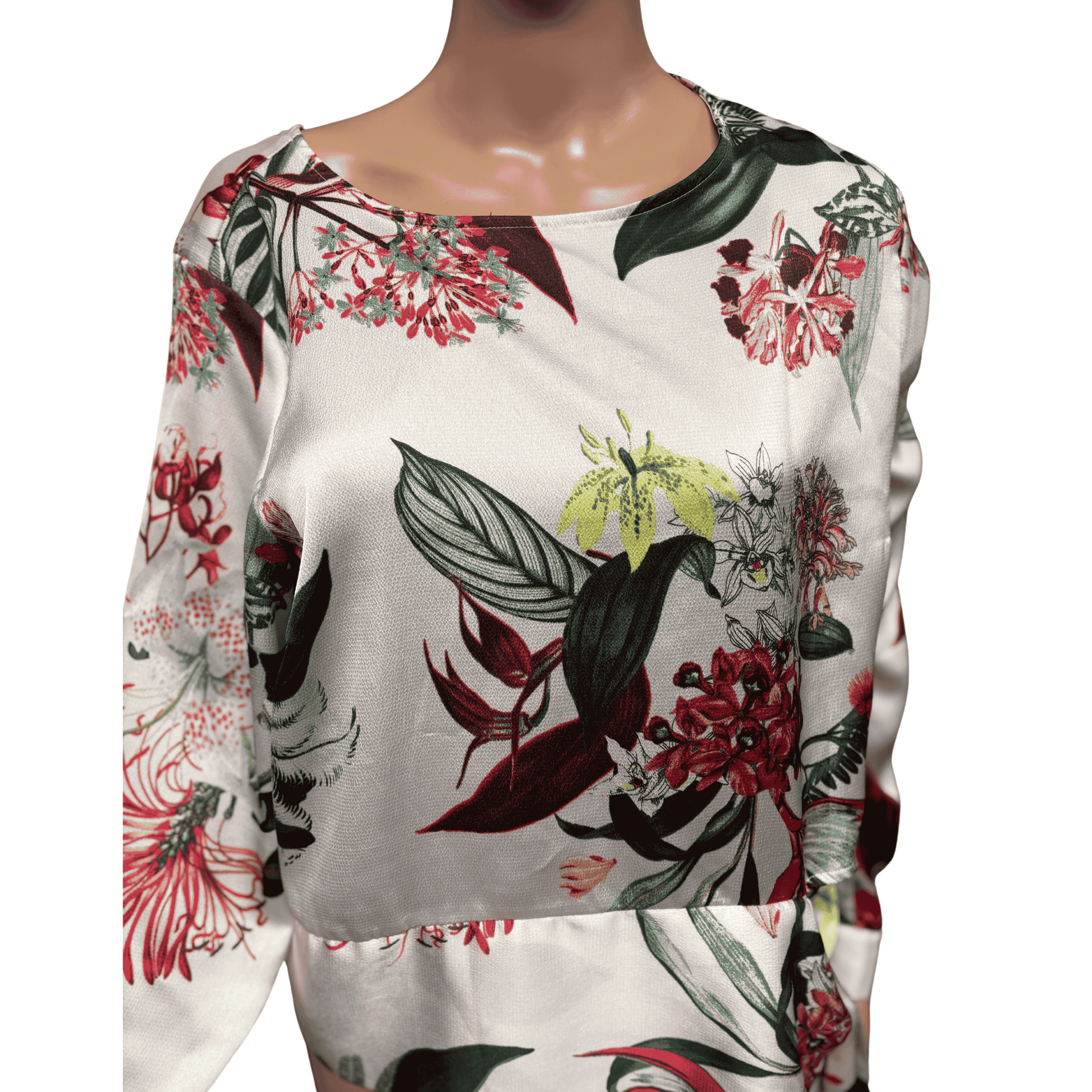 H&M Long Sleeve Flower Shirt (White Color) (Size 42)