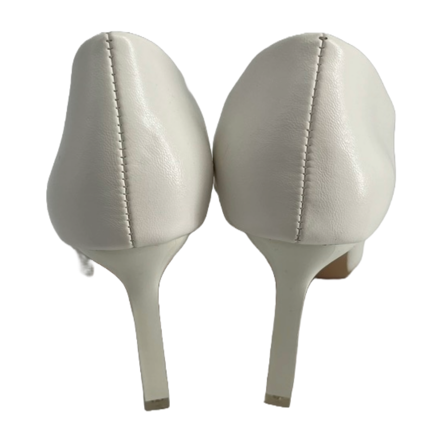 Sheln White Pointer Toe Kitten Heel Shoes for Women with Crystal Heels (Size 37)
