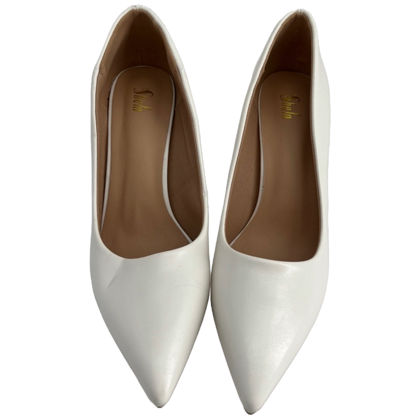 Expertly crafted with a stylish white pointed toe and low kitten heel, the Sheln White Pointer Toe Kitten Heel Shoes for Women provide both comfort and elegance. These stunning shoes also feature crystal heels, adding a touch of sparkle to your outfit. Available in size 37 for the perfect fit.