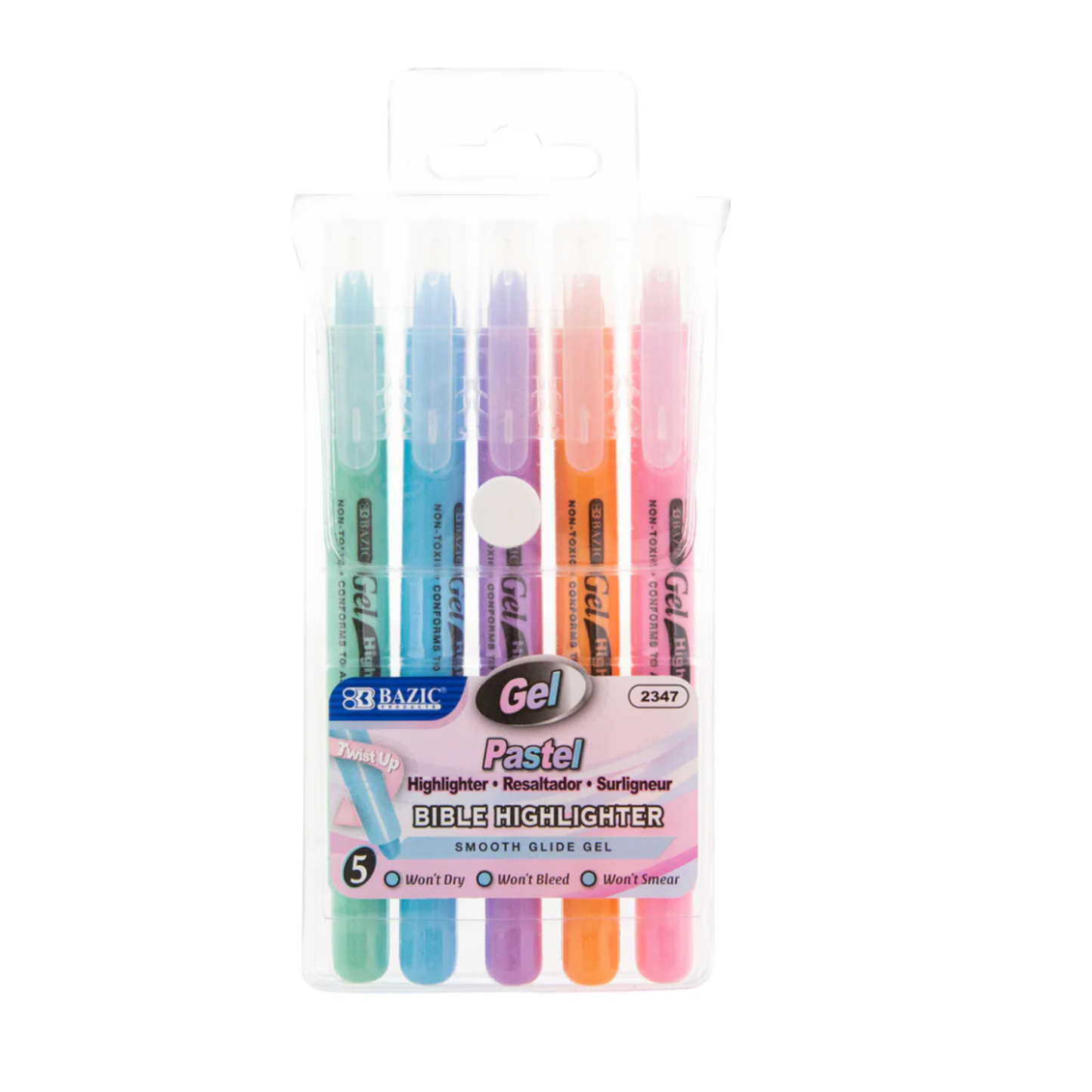 BAZIC Highlighter Gel Pen Pastel Color Bible Highlighters. No Bleed Dry for School and Office (1-Pack of 5 markers)