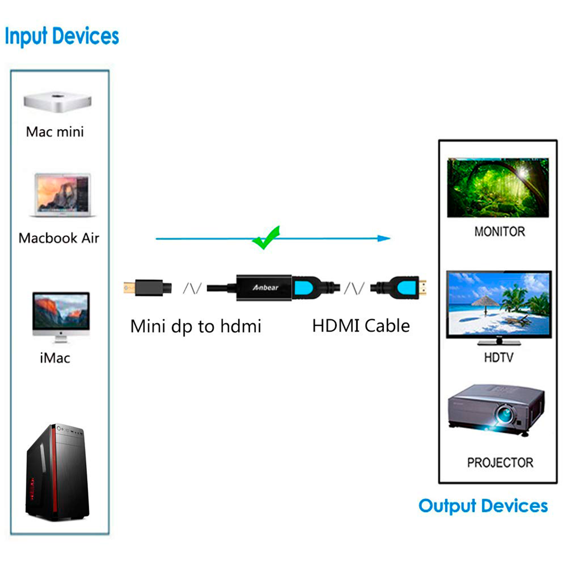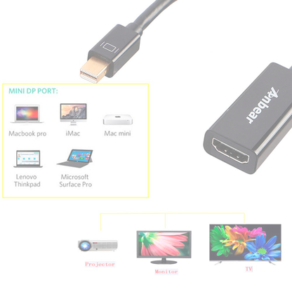 Maximize your device's display potential with the Anbear Mini Displayport to HDMI Adapter. This gold-plated adapter is compatible with a variety of devices, including MacBook Pro, MacBook Air, Mac Mini, and Microsoft Surface Pro. Experience crisp and clear visuals with ease.