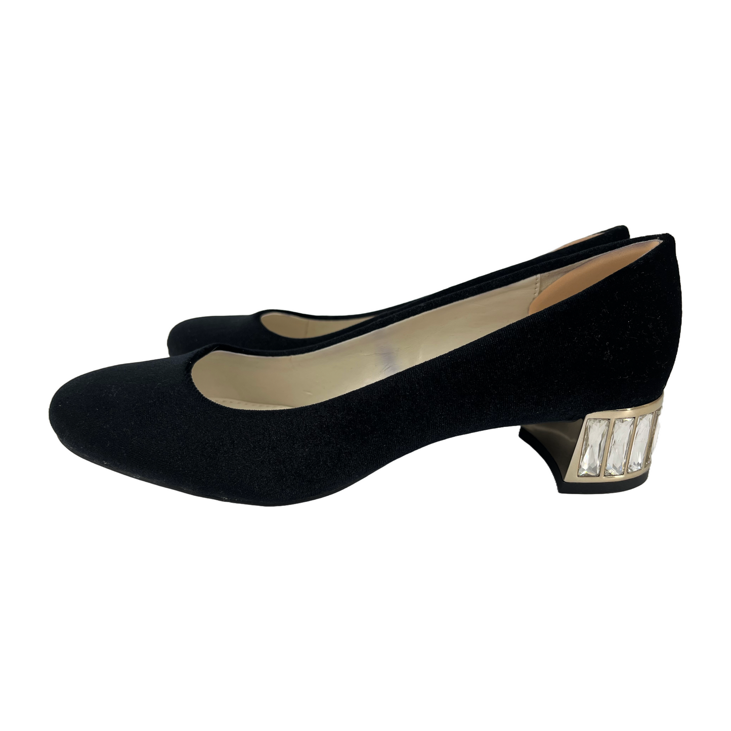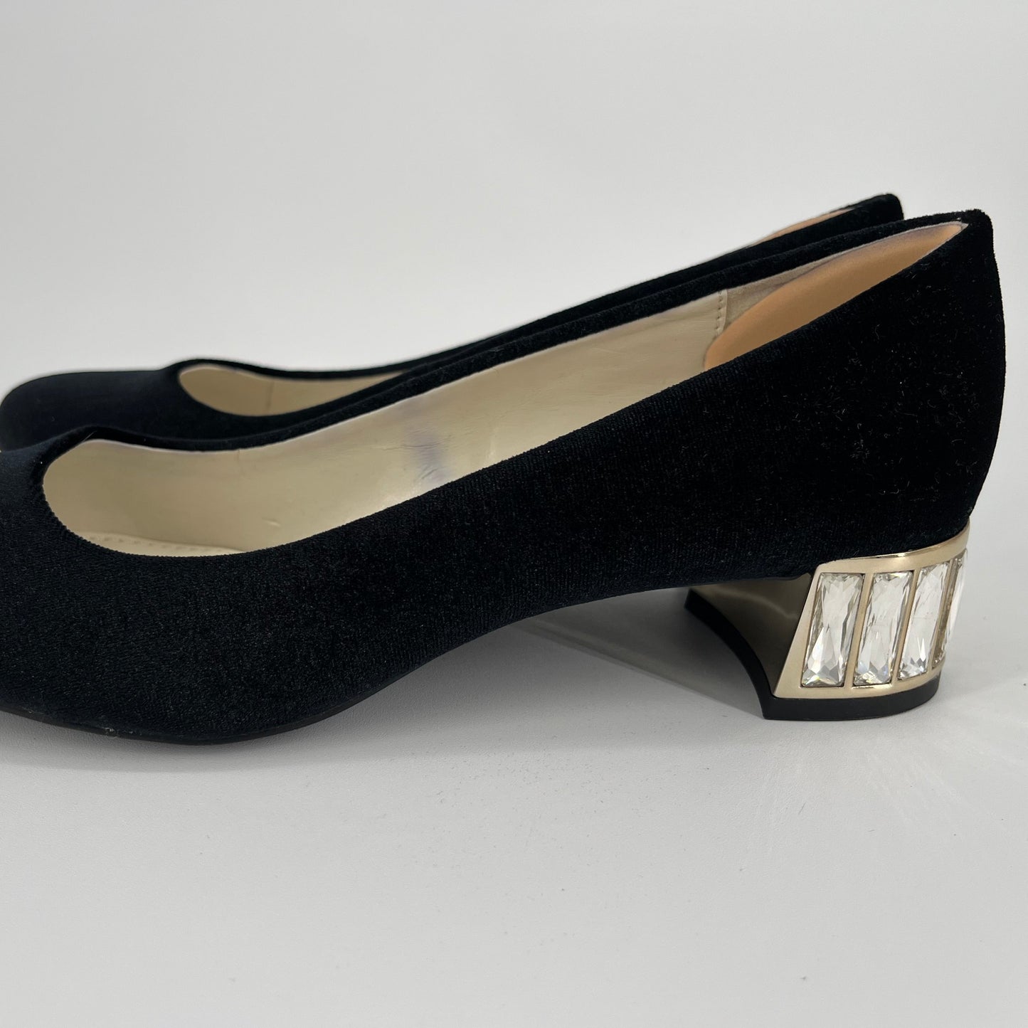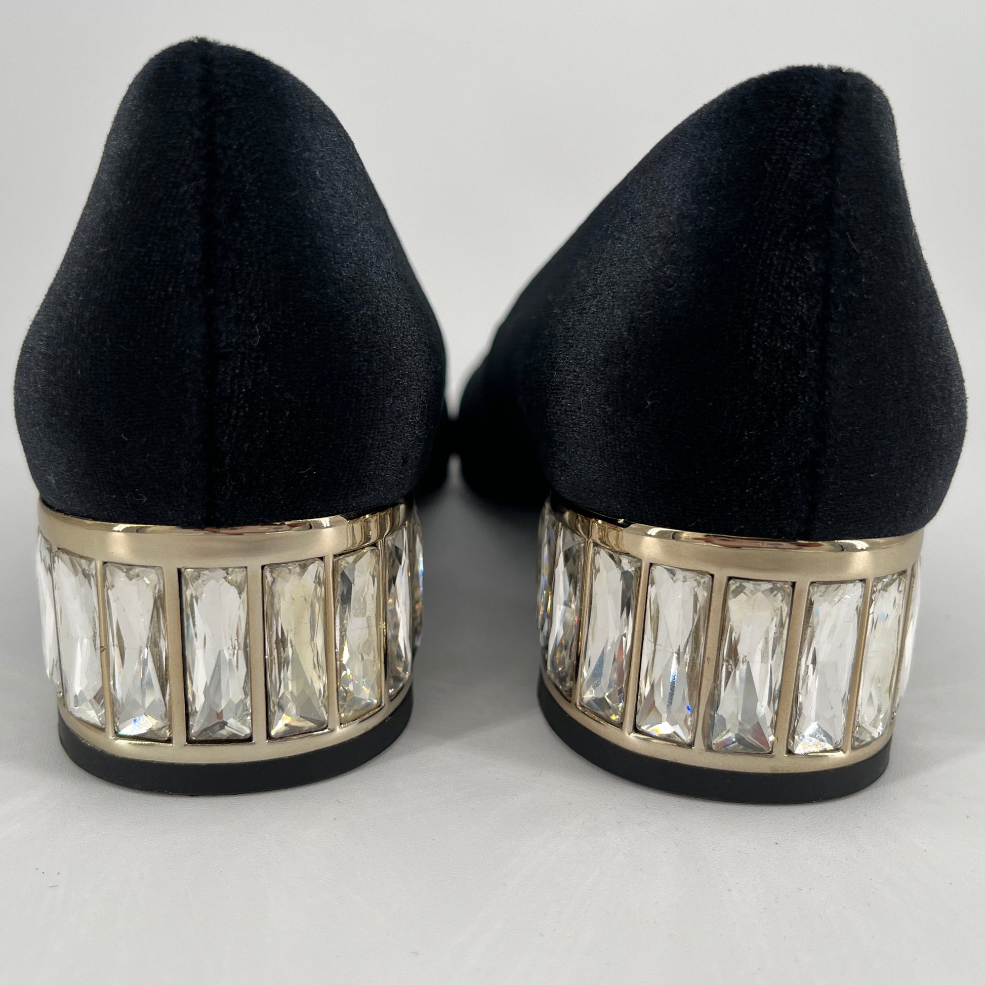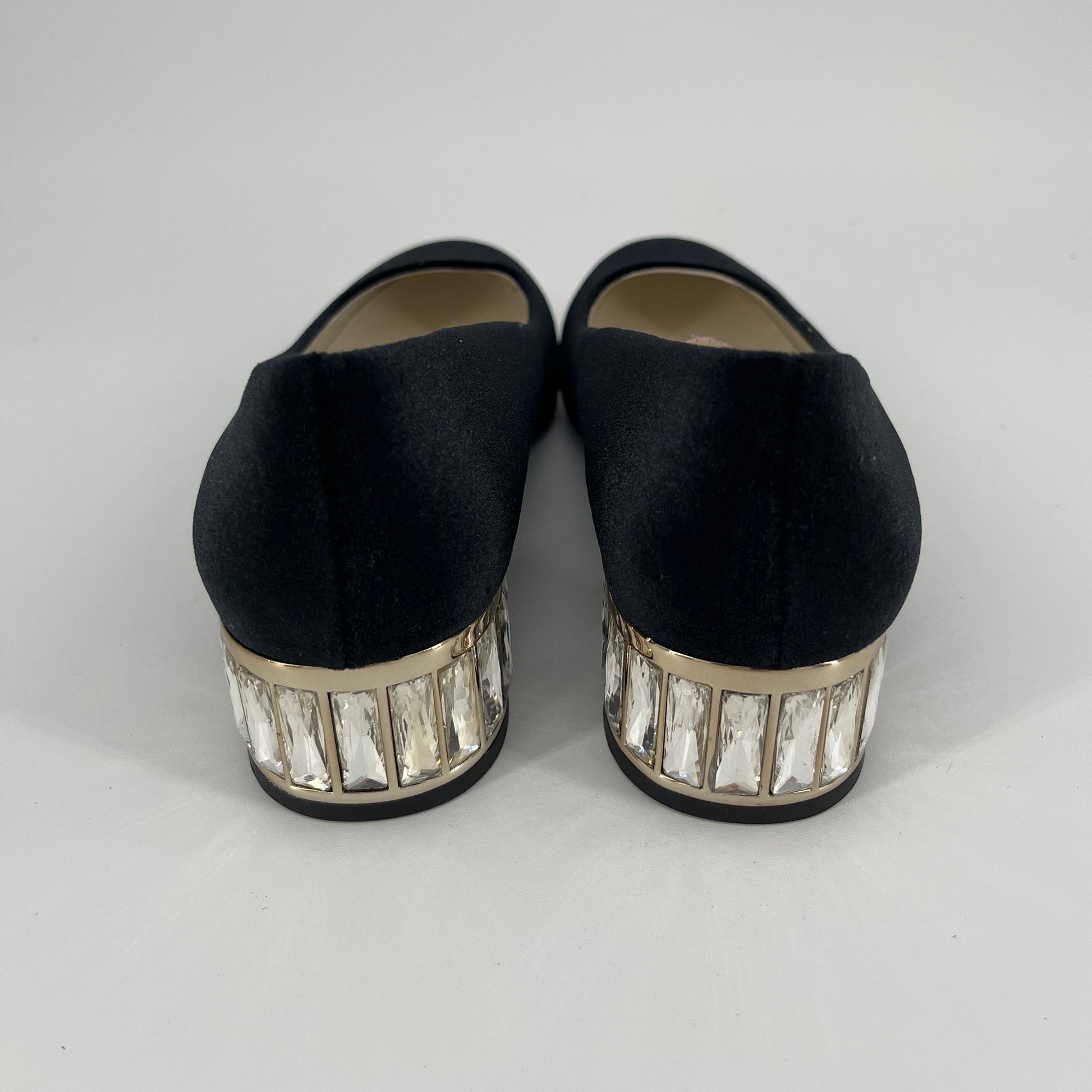 Anne Klein Black Suede Shoes with Gold Diamond Sole (Size 6 Adult)