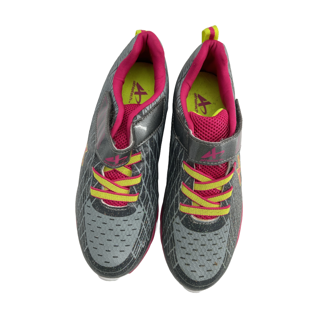 Athletech Girls Tennis Shoes Sneakers Velcro Pink Green Silver (Size 3)