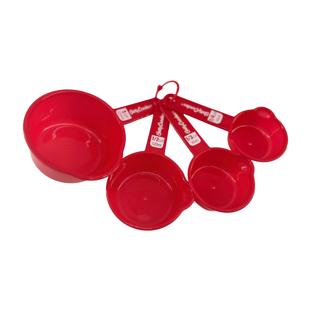 Expertly measure ingredients with Betty Crocker Measuring Cups. Made from durable plastic, these cups feature easy-to-read measurements for accurate cooking and baking. With a professional and precise design, create delicious dishes every time.