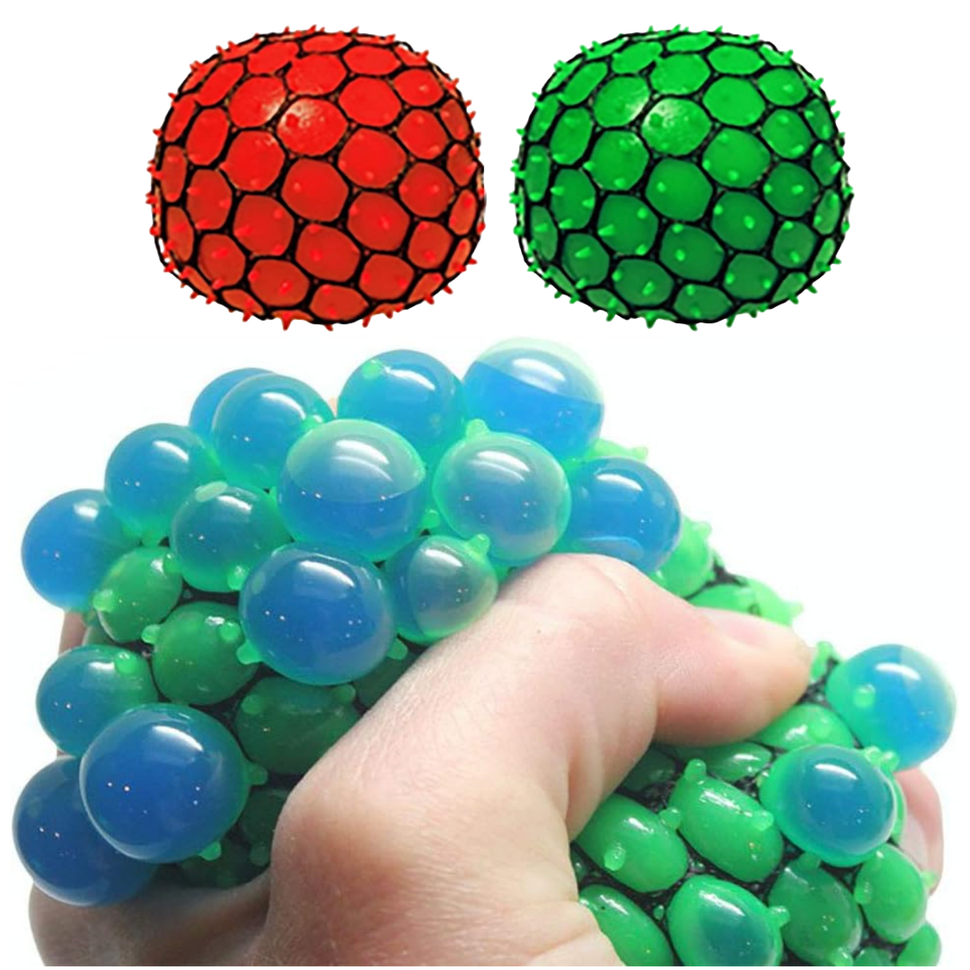 Enhance your sensory therapy with our set of 4 bubble mesh balls. These 3" squishy fidget toys provide stress-relief and promote focus while the web netting adds a satisfying tactile experience. Plus, the color-changing blobs and bubble-popping action make them perfect for occupational therapy.
