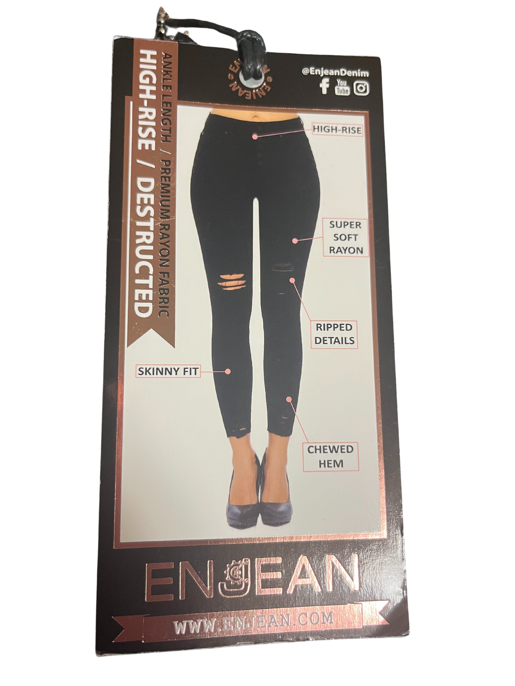 Embrace edgy style with our Enjean High Rise Destructed Style EP3203r Black Women's Pants! These pants feature a high rise fit and destructed detailing for a bold and unique look. Made with quality materials, they provide comfort and durability for all-day wear.