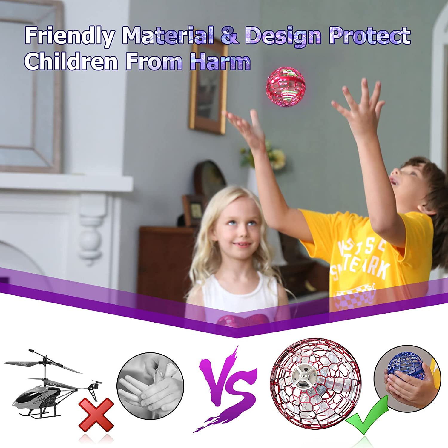 FLYNOVA Flying Orb Ball Toy, Hand Controlled Mini Drone, Boomerang Fidget Spinner, UFO Magic Hover Sphere with Lights Teens 10+ Year Old - Red
