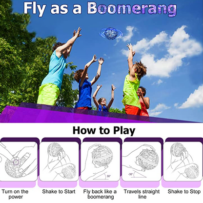- The motorized flying spinner floats, glides, and climbs through the air, then returns to your hand like a boomerang. Toss the spinning ball into the air, and watch as it circles back to you. Catch it in one hand and be ready to launch your next trick.