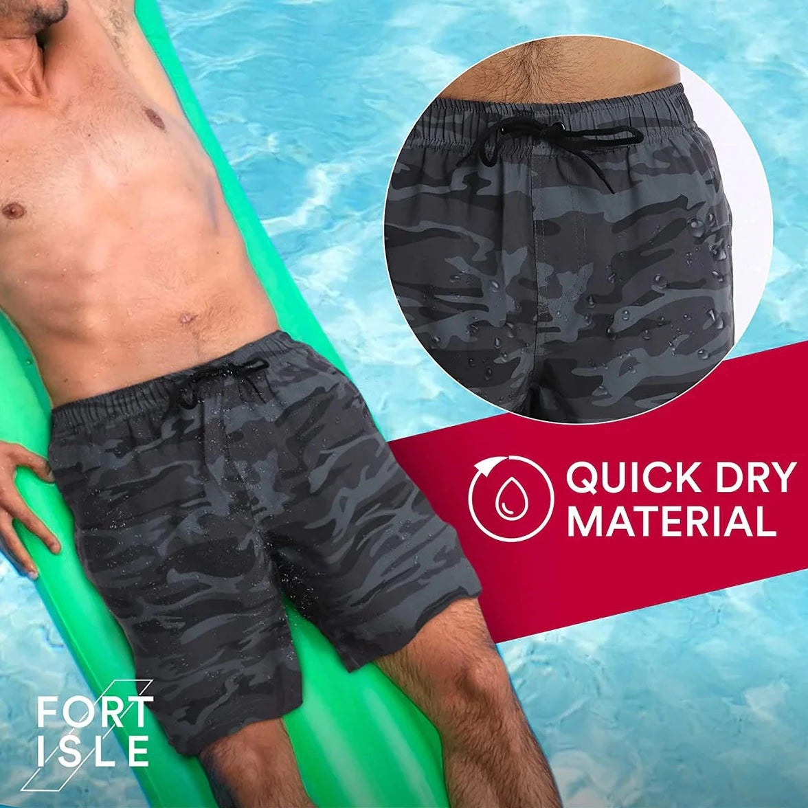 Experience ultimate comfort and style with the Fort Isle Men's Bathing Suit. Made with high-quality materials and expert craftsmanship, this suit offers a perfect fit and lasting durability. The modern design and breathable fabric make it perfect for any pool or beach day. Upgrade your swimwear game now!
