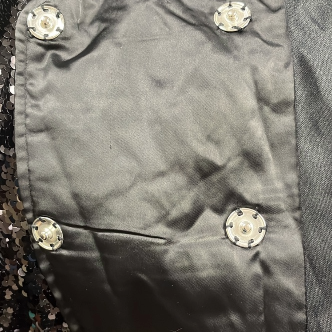 Elevate your style with the Kourtney Kardashian Suit. This stunning sequin blazer and cargo pants combo in plus is designed to give you the perfect fit and a touch of glamour. The blazer's notch lapel adds a hint of sophistication, while the cargo pants provide both comfort and versatility. Perfect for any occasion, this suit will make you look and feel like a fashion icon.