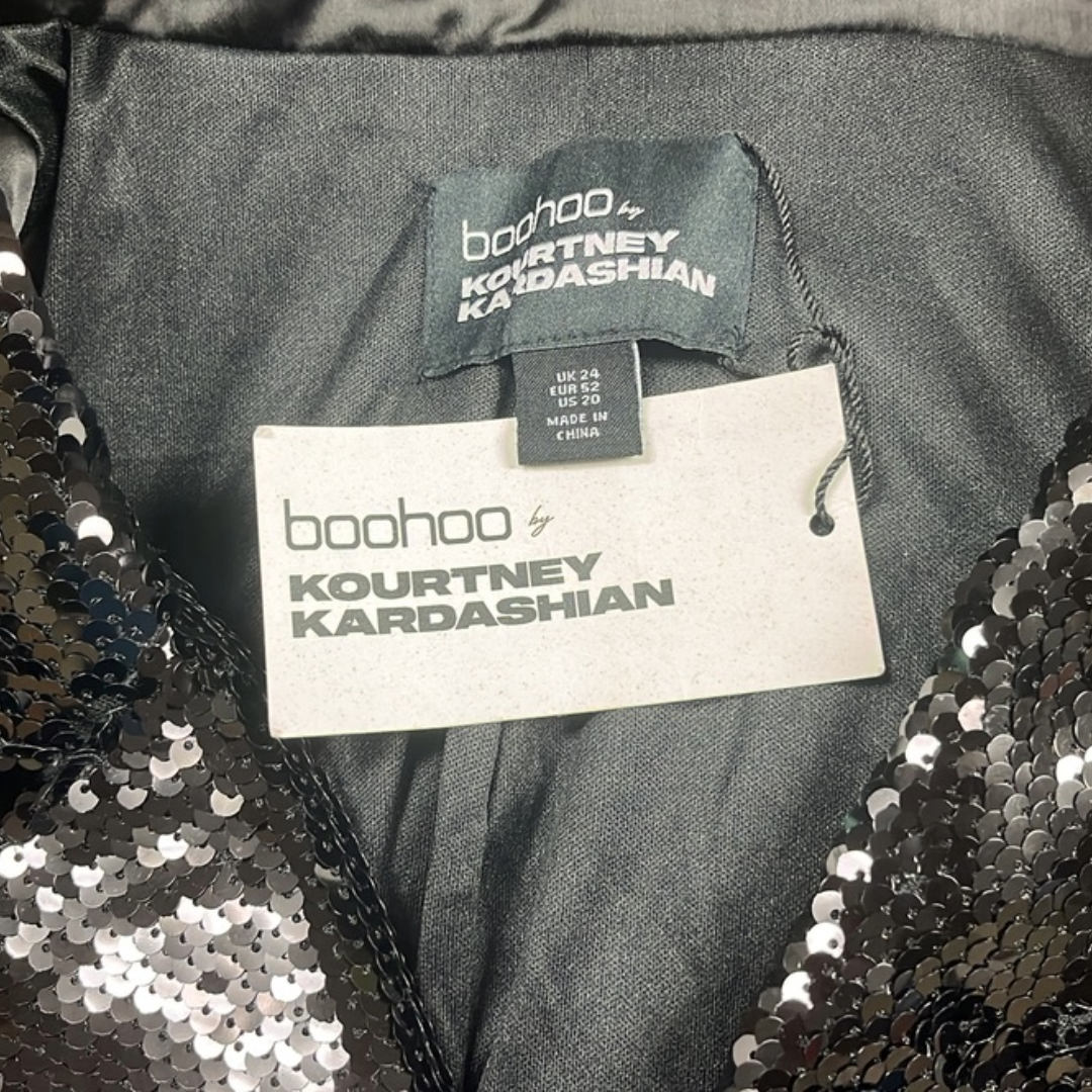 Kourtney Kardashian Suit Sequin Notch Lapel Blazer and Cargo Trouser Pants Plus Size 24/28