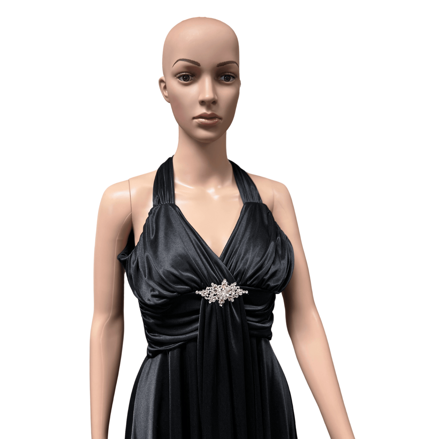 Introducing the New Bell Black Silk Party Dress, a stunning piece for any special occasion. Made with luxurious silk and available in a size S, this dress is both fashionable and comfortable. Elevate your style with this must-have addition to your wardrobe.