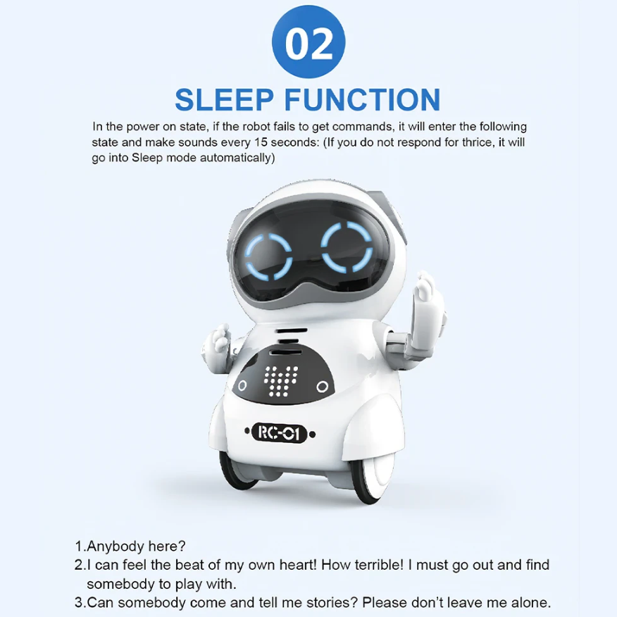 Repeat Mode: pocket robot can record your voice and repeat to you with robotic sound effects, not noisy