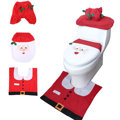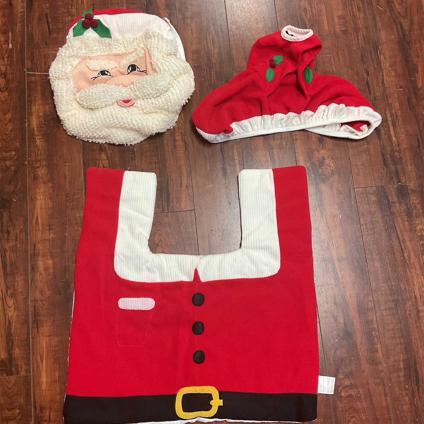 Santa Snowman Deer Spirit Toilet Seat Cover Rug Bathroom Set With Paper Towel Cover For Christmas Gift Premium Year Home Decorations (3 piece)