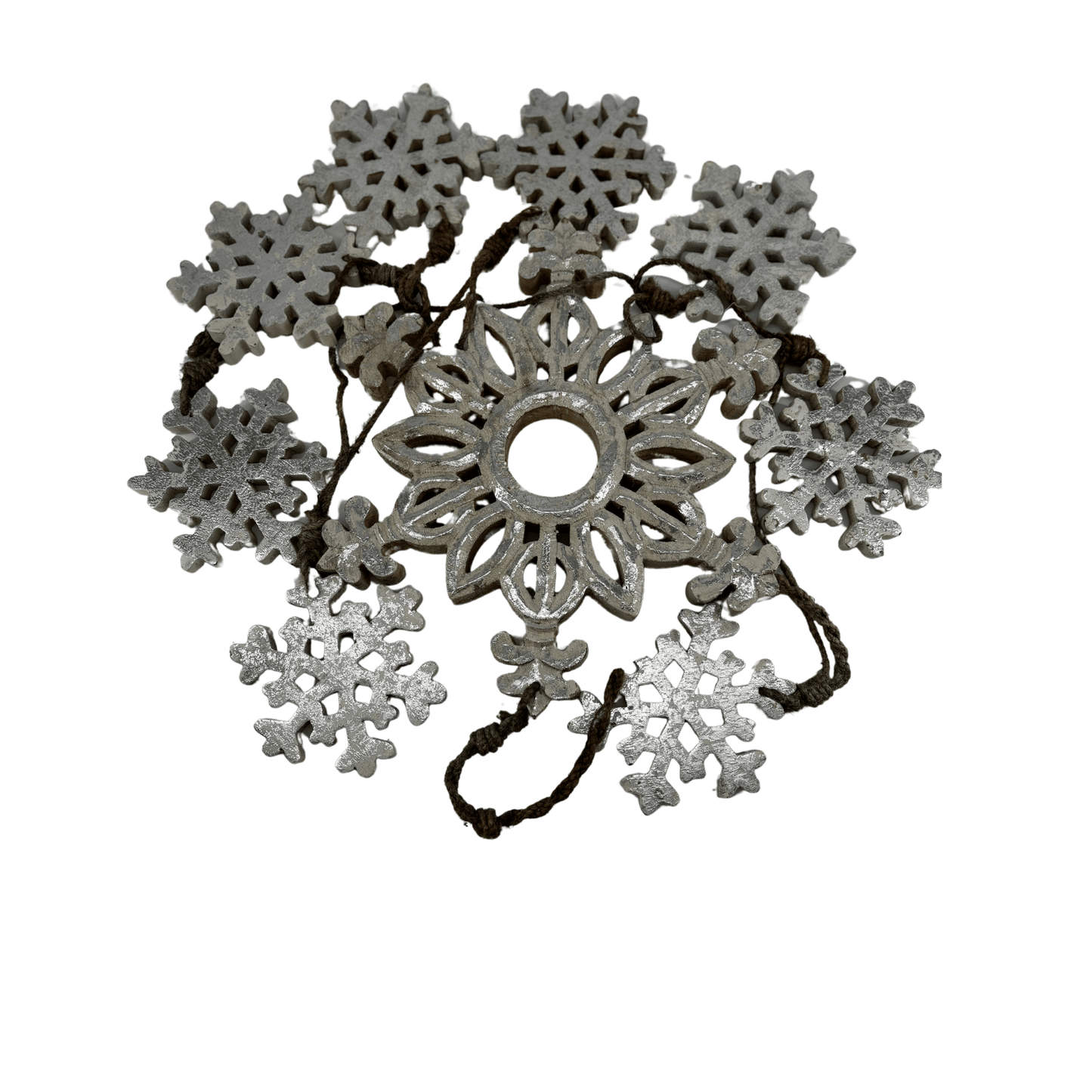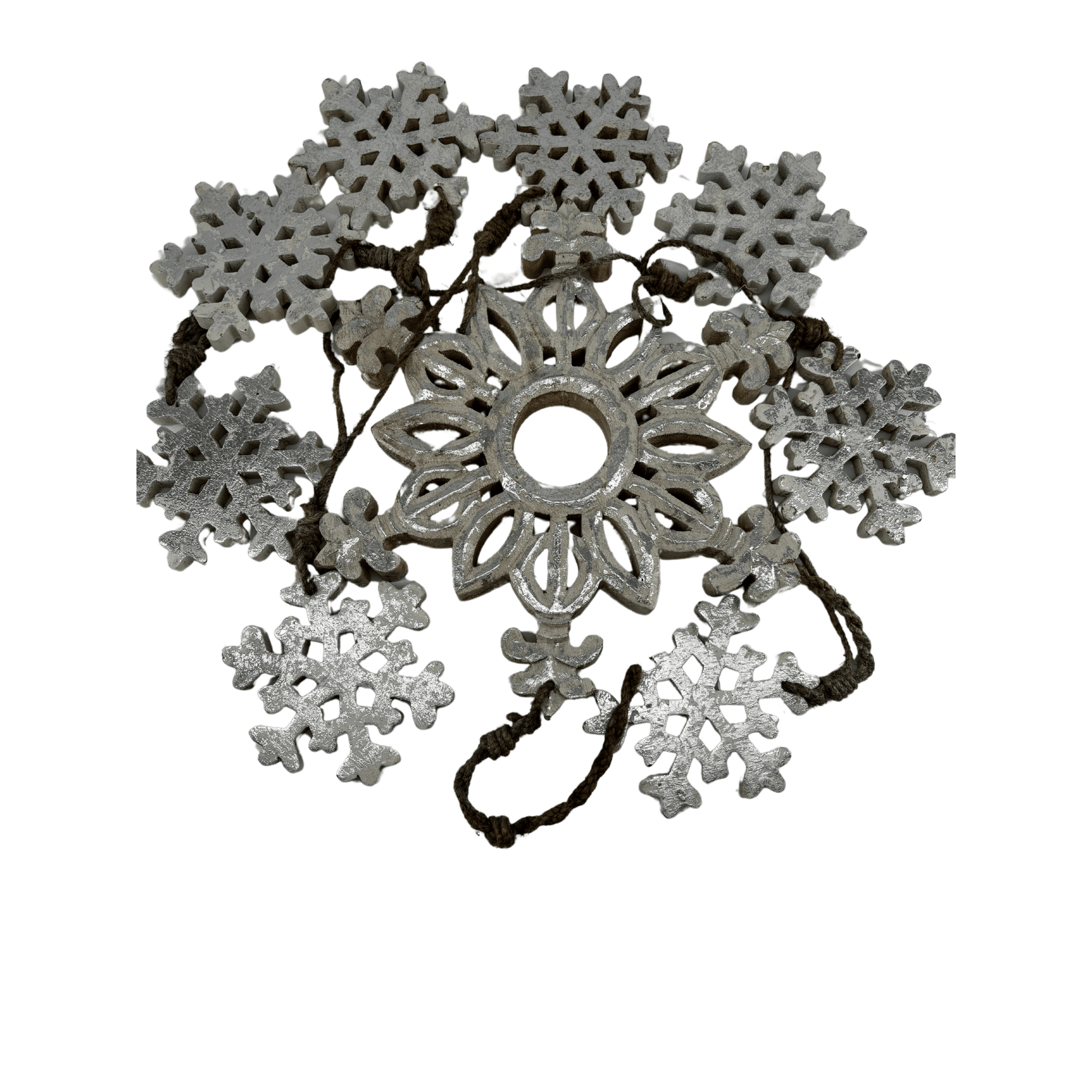 Set of Wooden Snow Flakes with Silver Color 70in