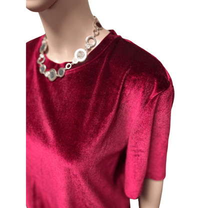 This Shein red velvet shirt (Size XL) is perfect for adding a touch of luxury to any outfit. Made with smooth, soft velvet material, this shirt offers both comfort and style. Plus, the size XL provides a flattering and comfortable fit for all body types. Upgrade your wardrobe with this stylish and versatile shirt.