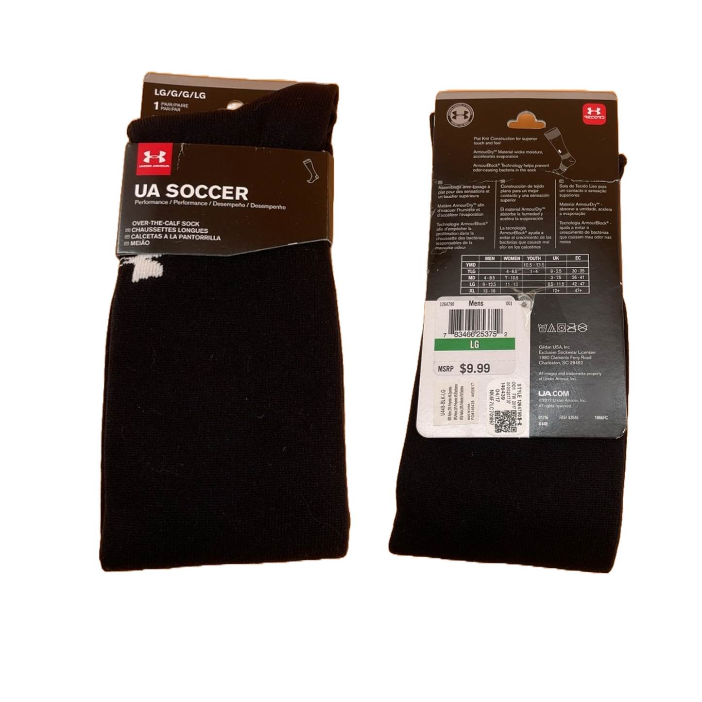 These Under Armour UA Soccer Socks are designed for men in size large. Made with premium materials, they provide comfort and support for the ultimate soccer experience. The black color adds a sleek and stylish touch to your game, while the quality construction ensures durability and performance. Elevate your game with these top-of-the-line soccer socks.